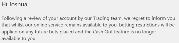 Bet365 were one of the few firms polite enough to inform me of restrictions