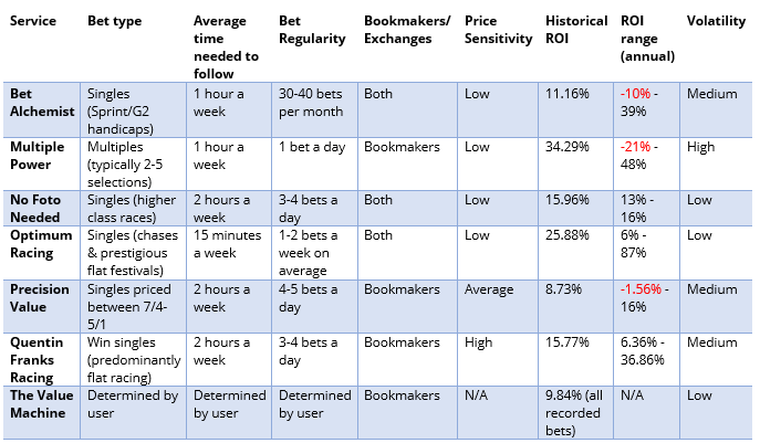Transparency is the most obvious common feature that the best paid services share. There is a clarity about what to expect, helping prospective followers to decide if the service is suitable for them. Don’t have bookmaker accounts? Not for you. Can’t get bets on relatively quickly? Won’t work. Want low volatility? Sorry, our average price is 20/1 and we have long losing runs.